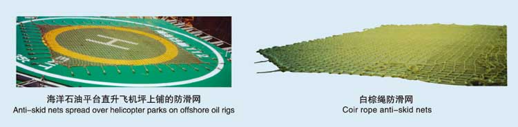 采用白棕繩、尼龍繩、防靜電尼龍繩為原料,編織采用交差穿插的方法,用于海洋石油平臺直升飛機(jī)坪、船甲板。
